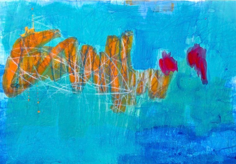 Acryl, Pastellkreide auf Papier